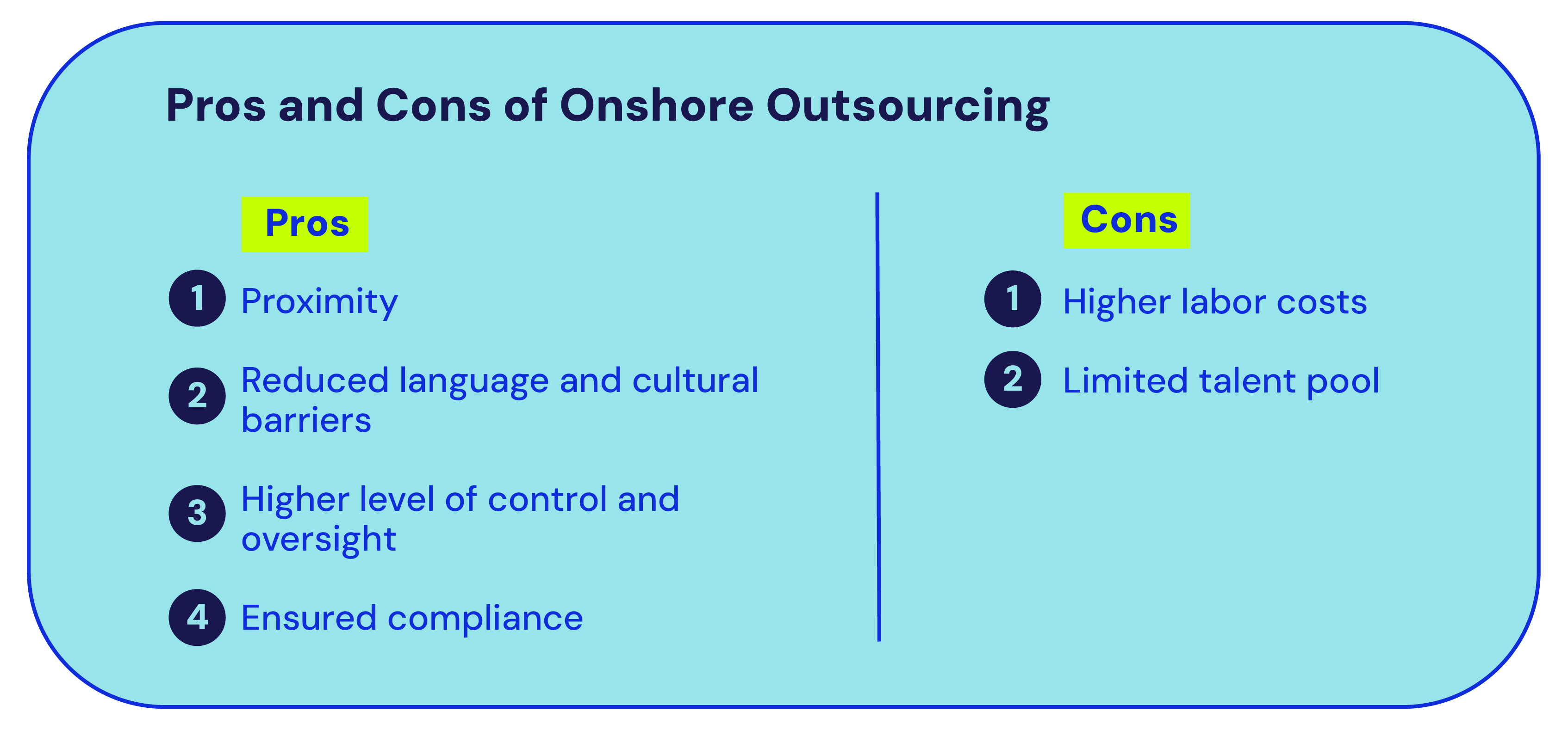 Characterized by its proximity to the hiring company, onshore outsourcing ensures close collaboration and communication between the parties involved. This proximity allows for easier coordination, quick response times, and a better understanding of the local business culture and practices.