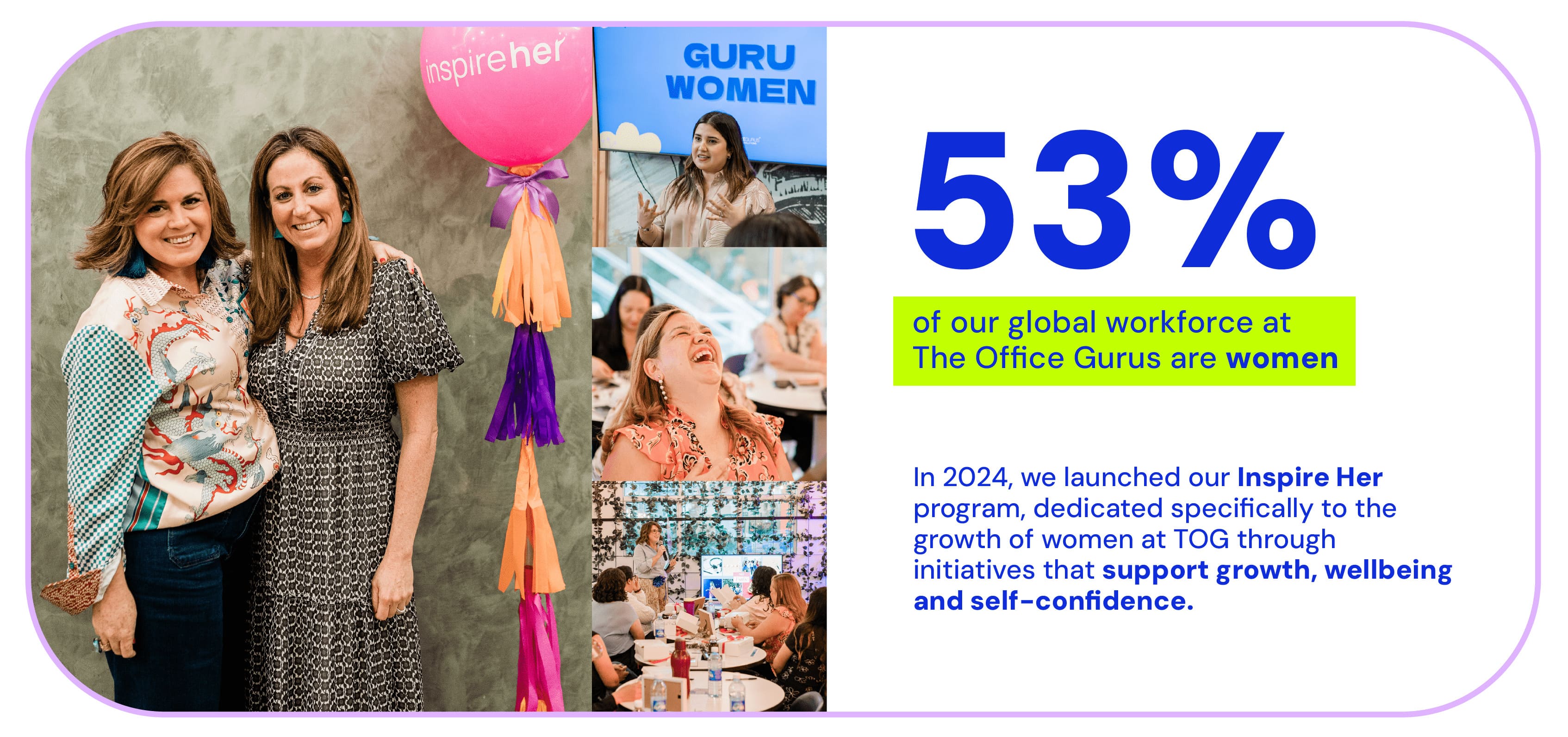 InspireHer is a program designed to empower and inspire women at TOG by offering growth, wellness, and self-confidence initiatives. Over time, we have identified specific needs in our team members that we have the mission to support through this program: