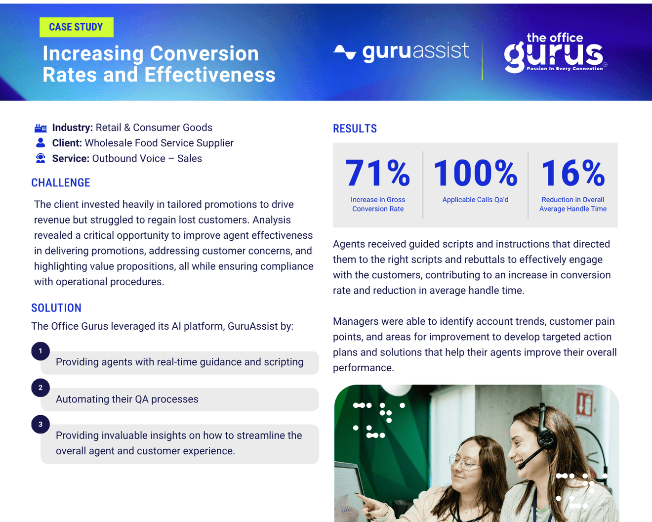 TOG implemented GuruAssist to provide real-time scripting, automate QA evaluations, and deliver actionable insights into agent performance.