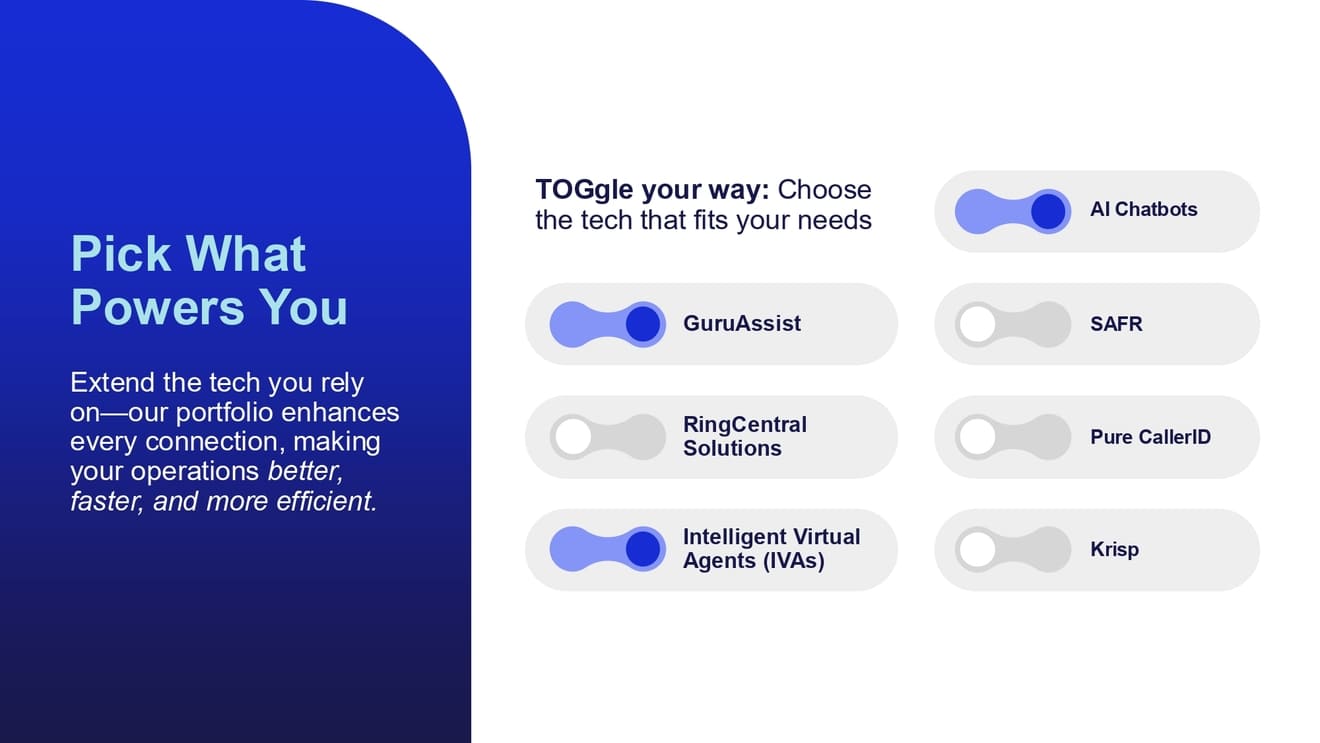 At The Office Gurus (TOG), our AI-driven contact center solutions empower agents with real-time insights, automate quality processes, and unify omnichannel experiences to help our clients deliver exceptional customer service at scale. Through our proprietary GuruAssist platform and a suite of integrated technology tools, including Intelligent Virtual Agents (IVAs), AI Chatbots, RingCentral integrations, SAFR, Krisp, and Pure CallerID, we help businesses modernize operations and elevate customer satisfaction without losing the human connection that builds loyalty.